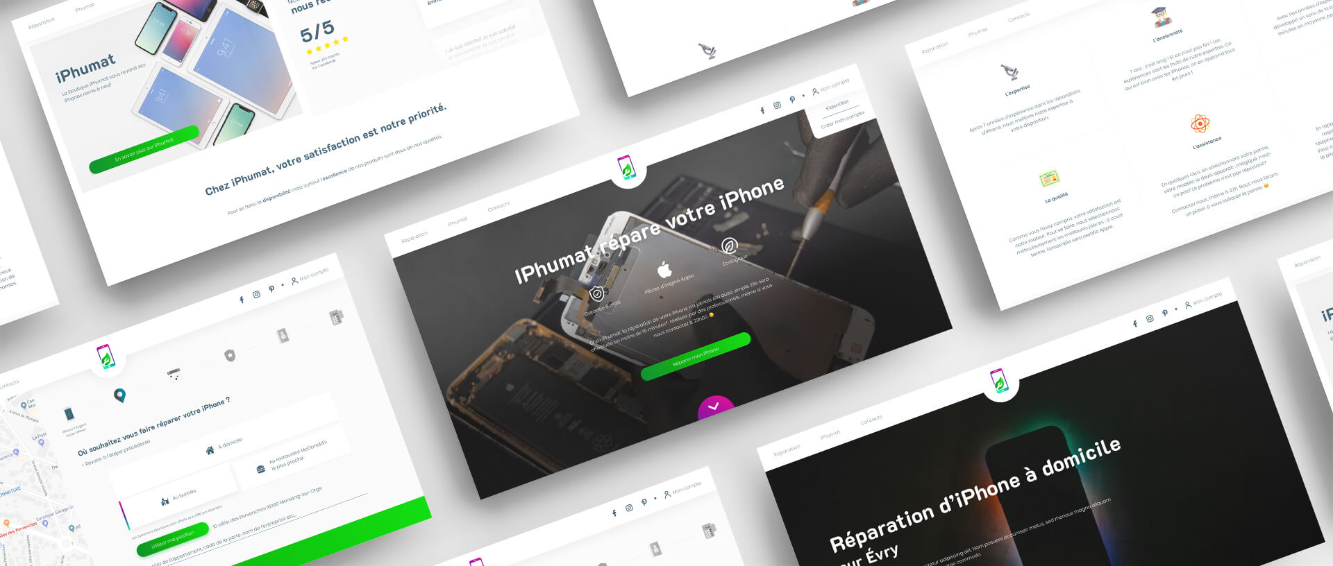 iPhumat is a home Iphone repair society. I worked on the whole branding, and designed the new website as well as the booking plateform.