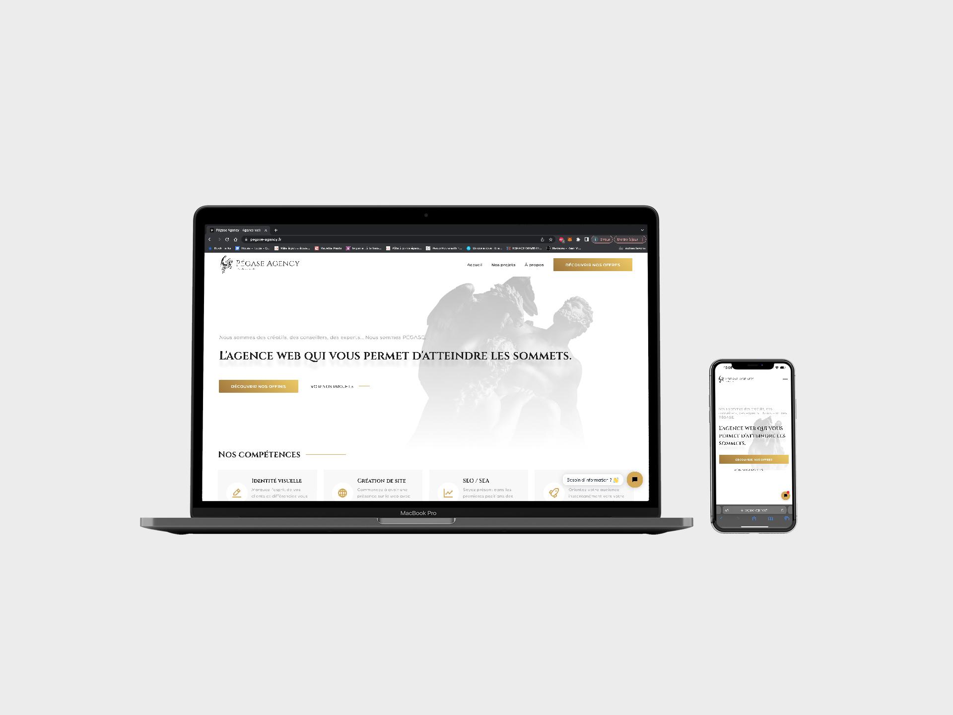 At the creation of the web agency, the fondator call me for design the whole brand, that had to be class and sober. I also designed and developed the website.