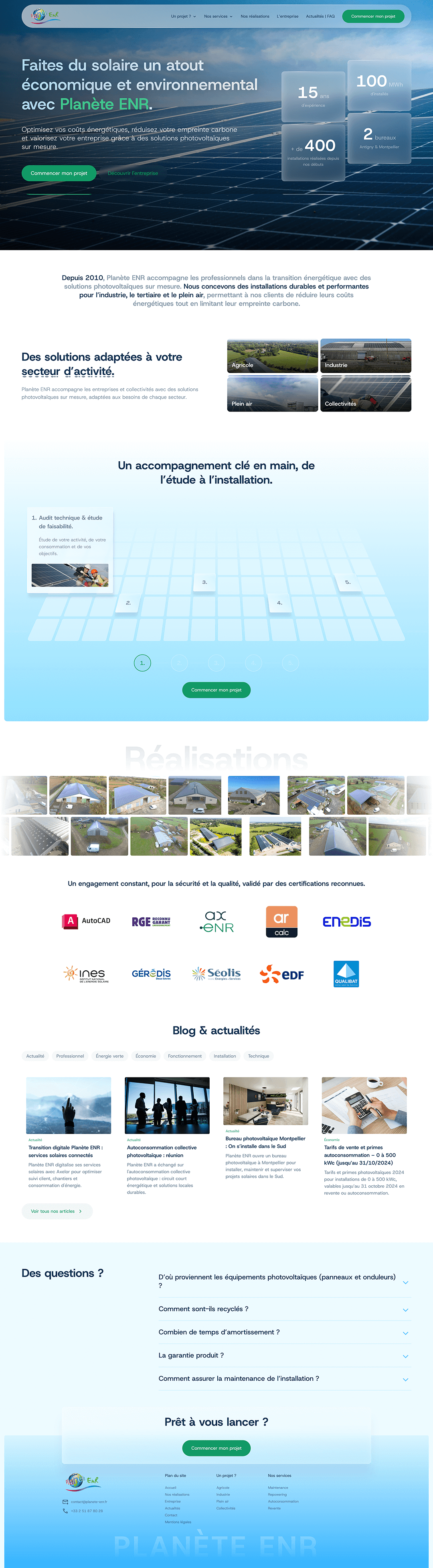 Planète ENR, a specialist in solar panel installation in Vendée, wanted to modernize its website to better reflect its technical expertise while enhancing user experience. The goal: a clean design, intuitive navigation, and clear highlighting of services to convert visitors into qualified leads.
